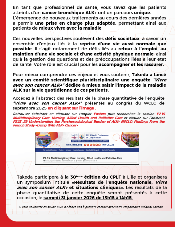 Vivre avec son cancer ALK+ : Takeda s’engage à mieux comprendre les nouveaux défis sociétaux de ces patients.
